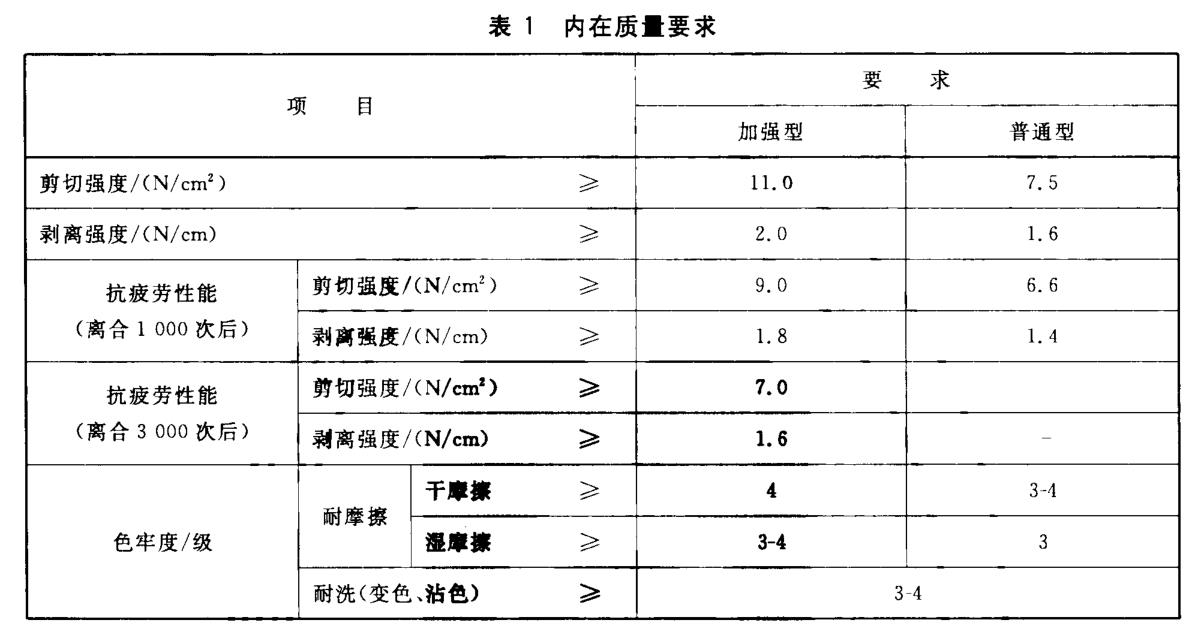 粘扣帶按抗疲勞性能不同可分為普通型和加強型。內在質量指標要求: