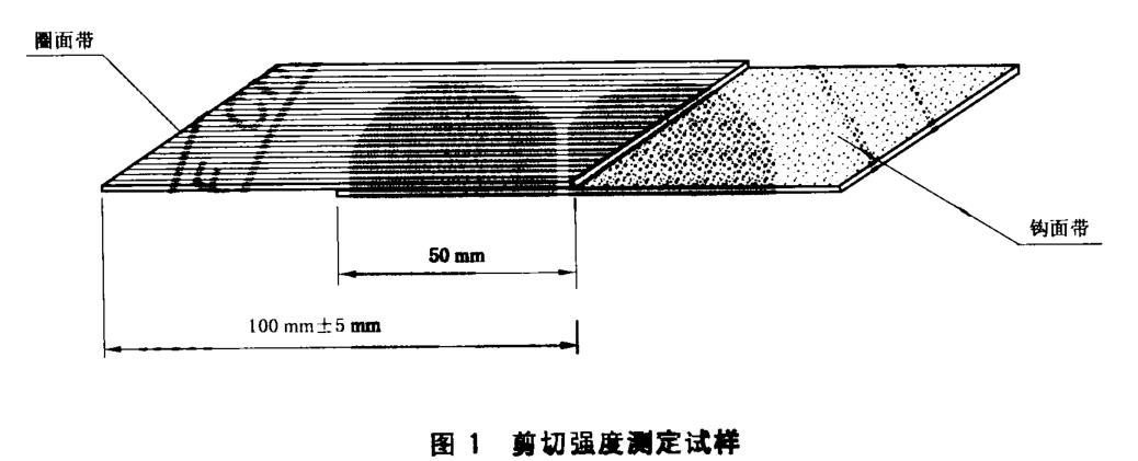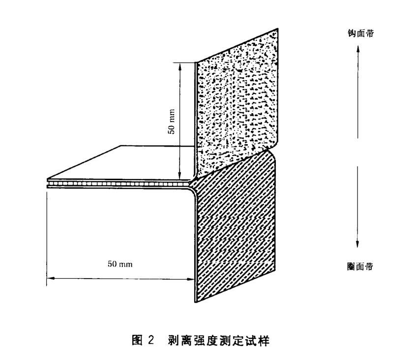 參照剪切強度試樣制備方法,但在粘合時將鉤面帶和圈面帶的一端對齊,再輕輕壓合,并使其有效長度為50mm。